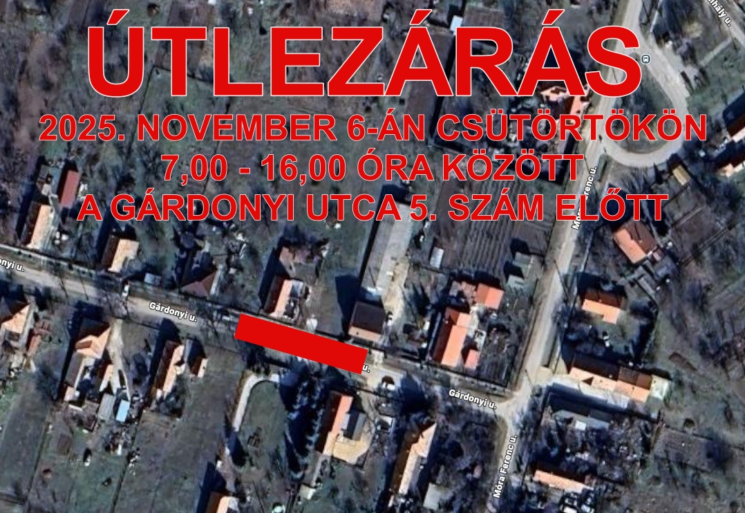 Tájékoztatom a Tisztelt Lakosságot, hogy 2025. november 6-án 7,00 - 16,00 óra között